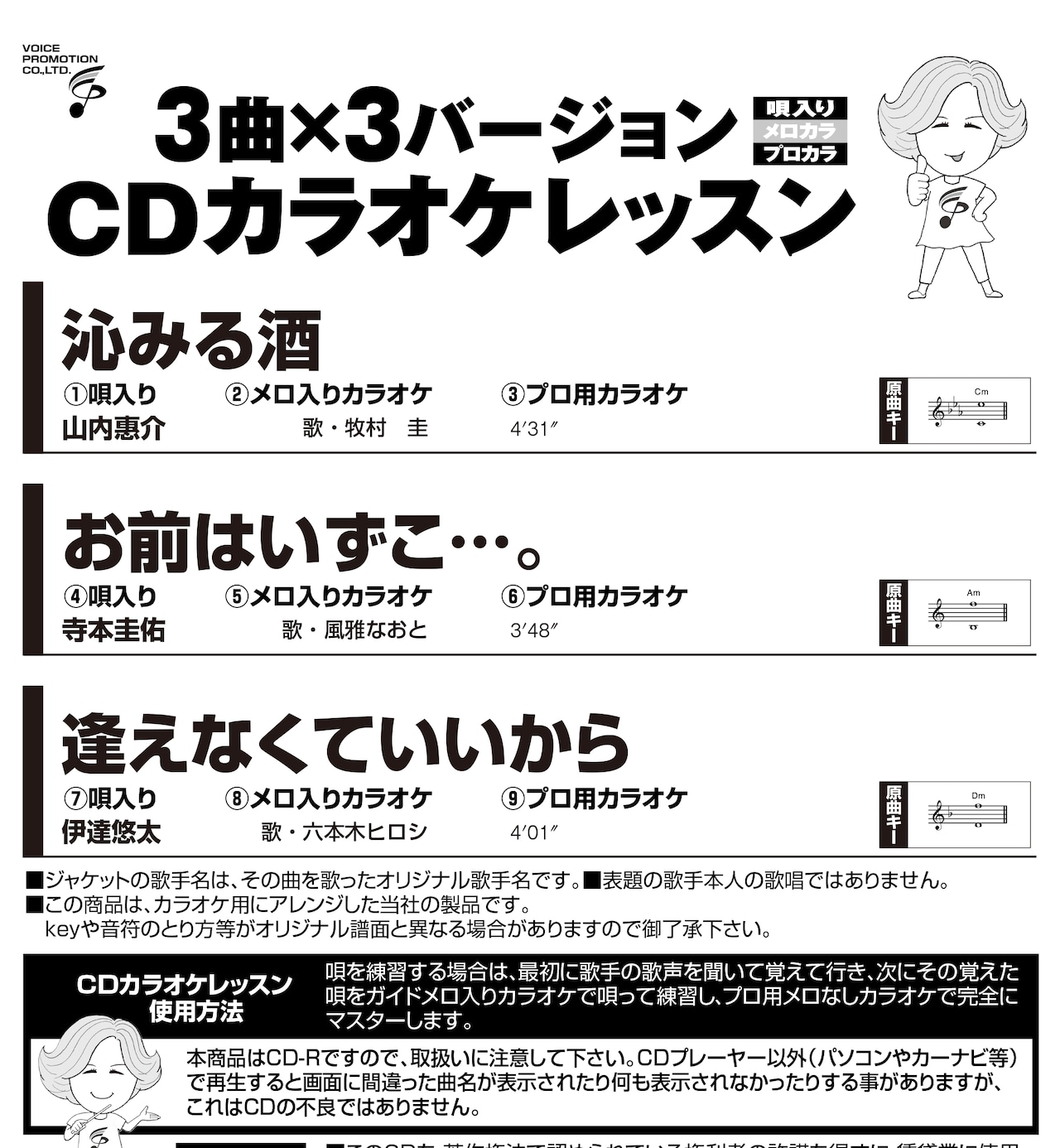 ・3曲x3バージョン(歌入り/メロカラ/プロカラ)