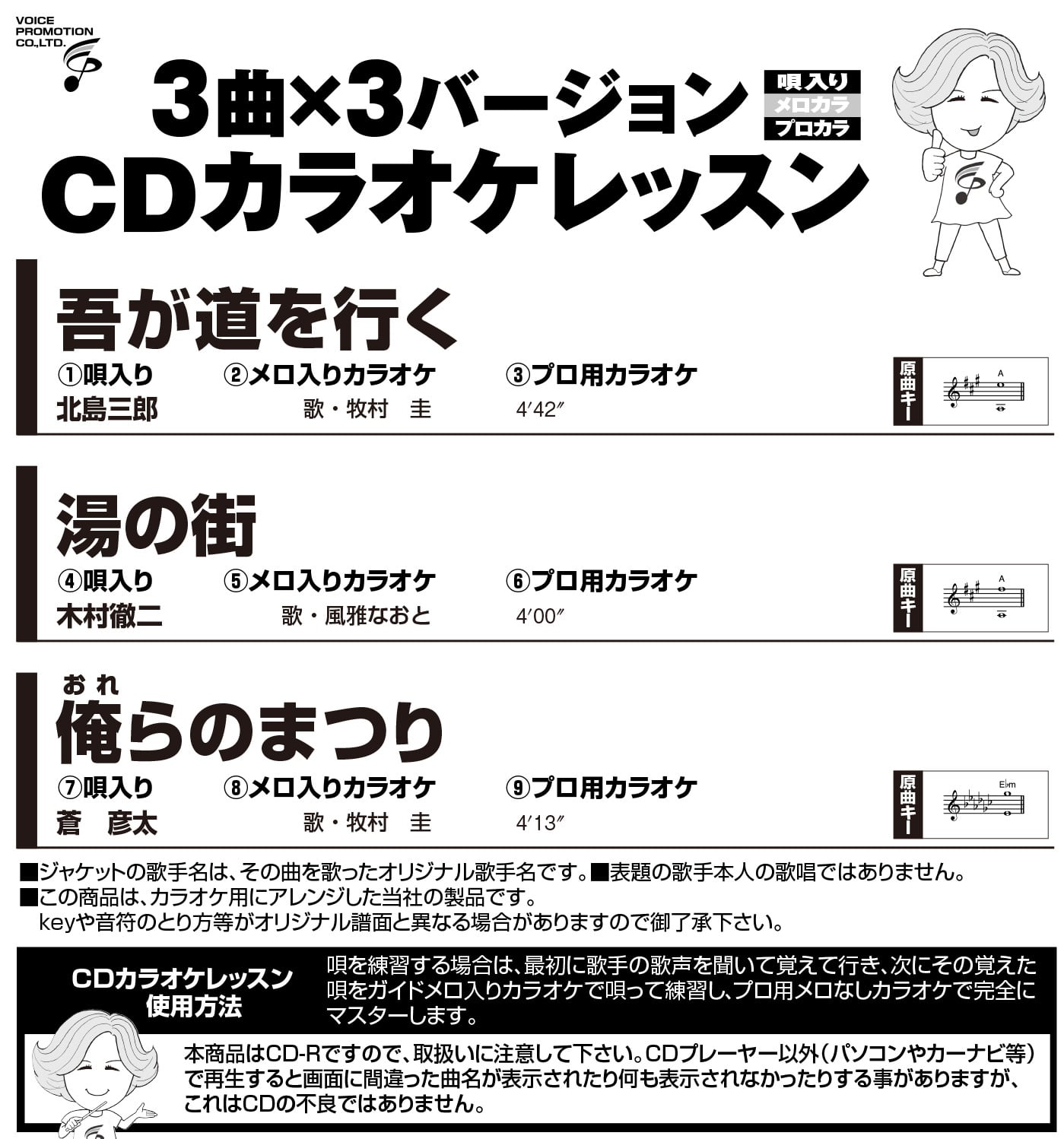 ・3曲x3バージョン(歌入り/メロカラ/プロカラ)