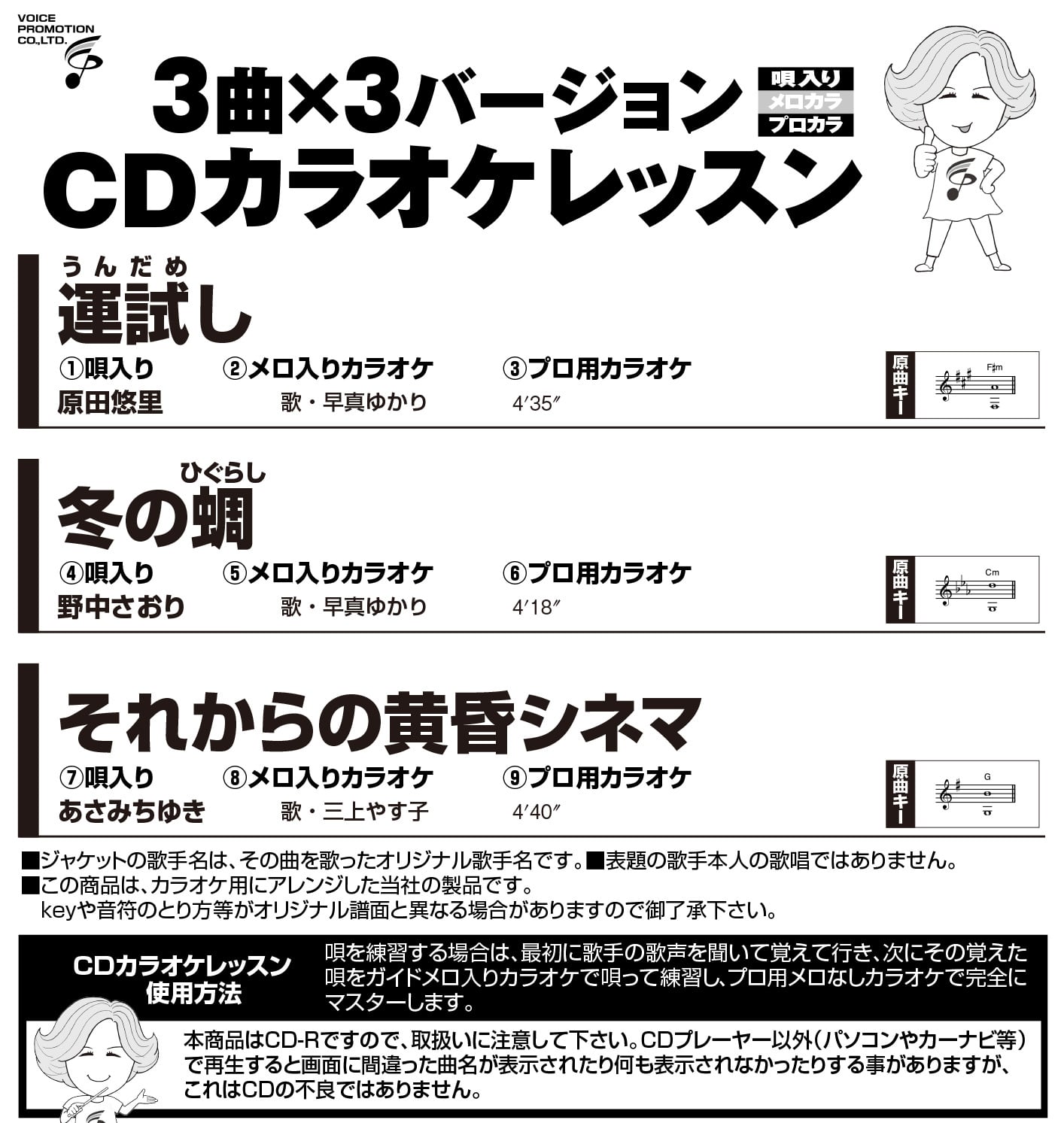 ・3曲x3バージョン(歌入り/メロカラ/プロカラ)