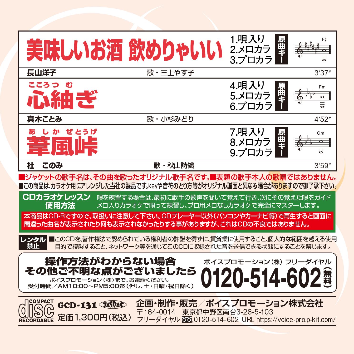 ※本商品はCD-RですのでCDプレーヤー以外(パソコンやカーナビ等)で再生すると画面に間違った曲名が表示されたり、何も表示されなかったりする事がありますが、CDの不良ではありません。