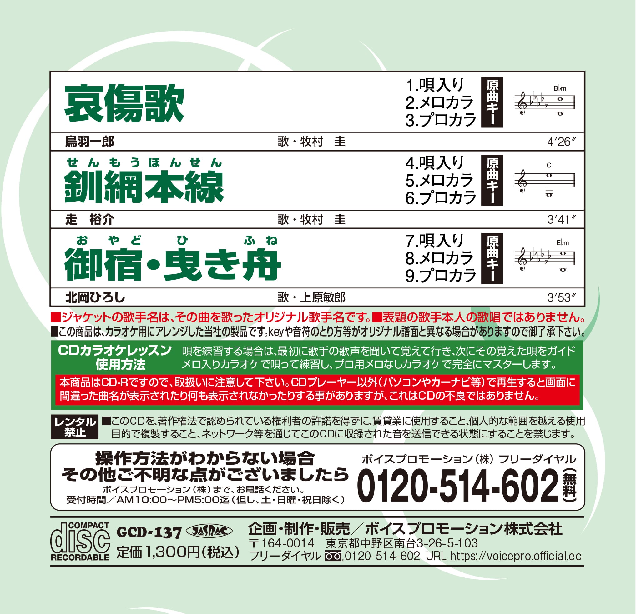 ① 哀傷歌 鳥羽 一郎/唄・牧村 圭