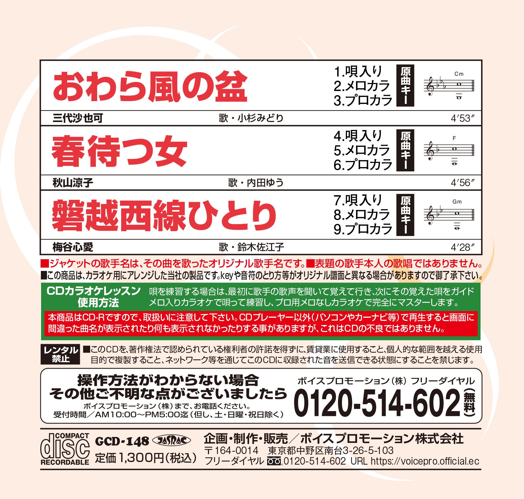 ※本商品はCD-RですのでCDプレーヤー以外(パソコンやカーナビ等)で再生すると画面に間違った曲名が表示されたり、何も表示されなかったりする事がありますが、CDの不良ではありません。