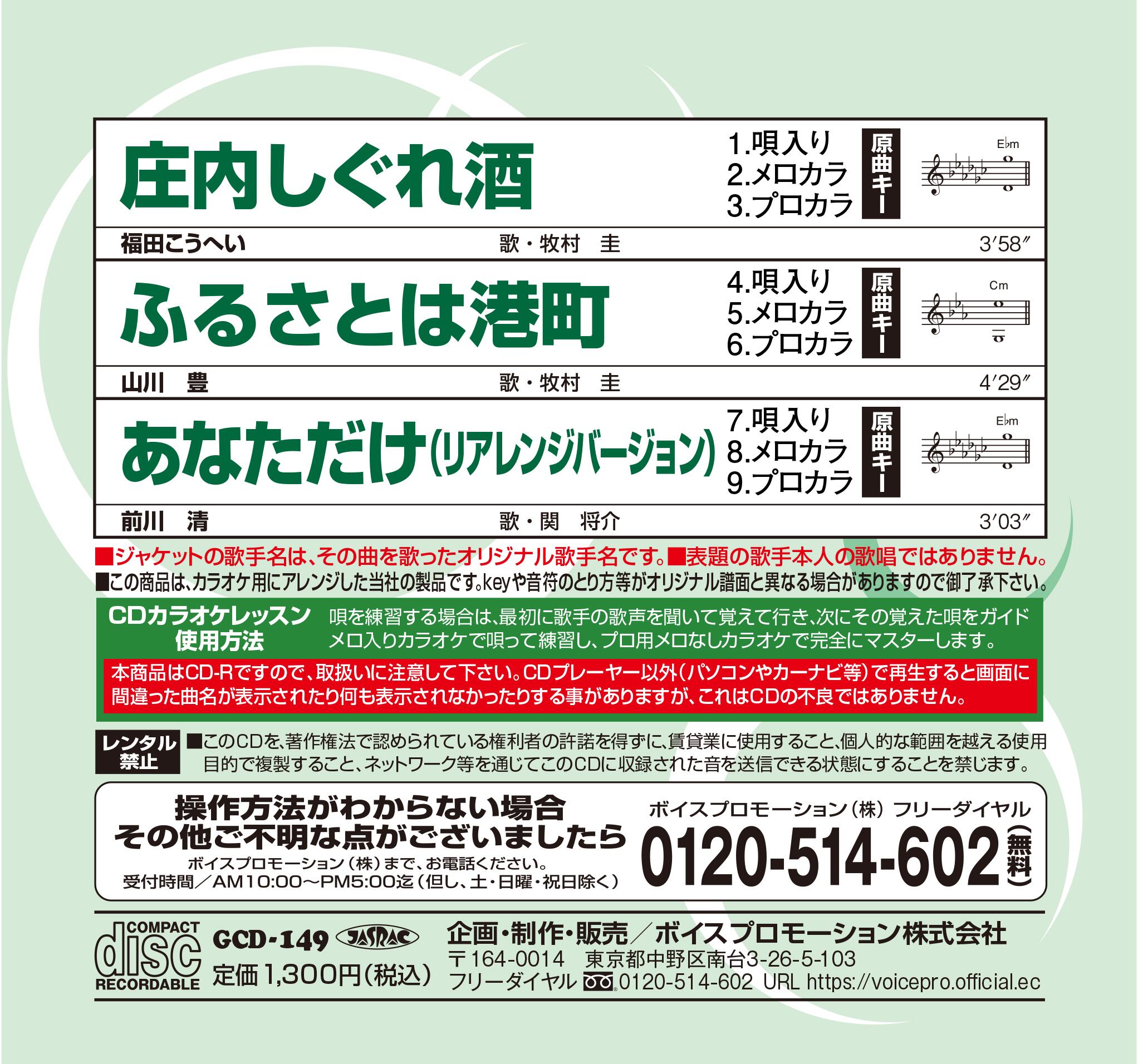 ※本商品はCD-RですのでCDプレーヤー以外(パソコンやカーナビ等)で再生すると画面に間違った曲名が表示されたり、何も表示されなかったりする事がありますが、CDの不良ではありません。
