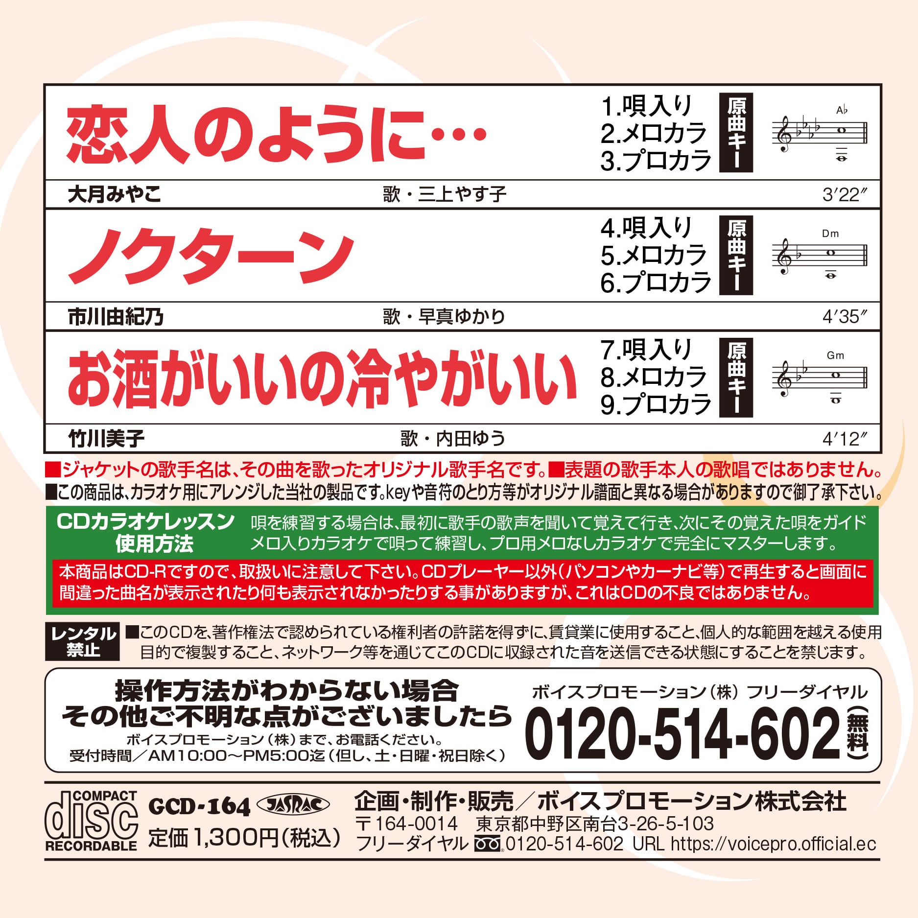※本商品はCD-RですのでCDプレーヤー以外(パソコンやカーナビ等)で再生すると画面に間違った曲名が表示されたり、何も表示されなかったりする事がありますが、CDの不良ではありません。